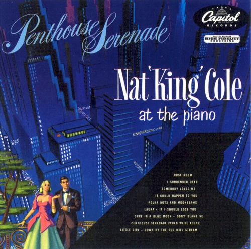 As far as sales went, the future prospects for the Trio was limited and fading due to shifts in fashions, while the future for pop vocal balladry looked to be better and infinite. Capitol might well have conceived of this set in order to establish a more lucrative market for his piano talents: upscale ambience, with perhaps a foot in the then-growing straight jazz market. Alas, sales were such one might joke that Penthouse Serenade only sold to owners of ritzy metropolitan penthouses. This point is of course not exactly unrelated to why there would be less heard from Nat's piano and more pop vocals in future.